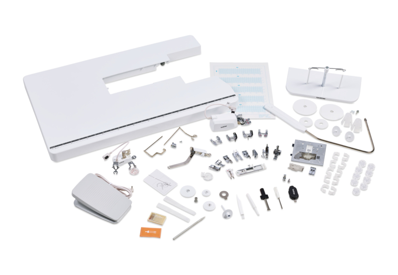 Een brede serie naaivoeten, waaronder de nieuw ontworpen verstelbare ritsvoet, en de verlengtafel worden met de CX1 meegeleverd.