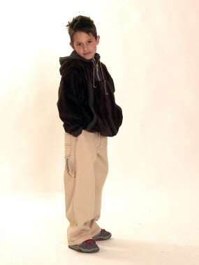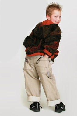 broek: 1 knoop / 40cm elastiek, 4cm br. / rits 18cm /
