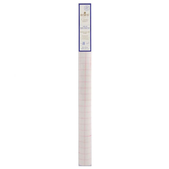 DMC's Aidastof Magic guide heeft handige, rode lijnen die verdwijnen zodra de stof gewassen wordt op 40°C. Deze selectie 5,5 kr/cm (14 count) Aida borduurstof is 50,8 x 61cm en verkrijgbaar in diverse kleuren.