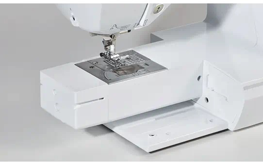 Een boventransportvoet zit er nu standaard bij! Moeilijke soorten stof en meerdere stoflagen naaien is nu een gemakkelijke en aangename klus. De quiltgeleider van de boventransportvoet houdt je steken ontertussen recht en met perfect gelijke afstand van elkaar.