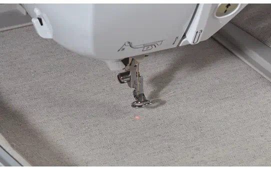 Perfectie is de standaard. Zet de naald exact op de juiste plaats neer met de LED-pointer. Gebruik de draaifunctie om de stof gemakkelijk te draaien en perfect scherpe hoeken te naaien. De automatische draadknipfunctie knipt de draden netjes af tijdens het borduren, terwijl de draadkniptoets op de machine de draden tijdens het naaien keurig afknipt. Dus: geen knipwerk achteraf!