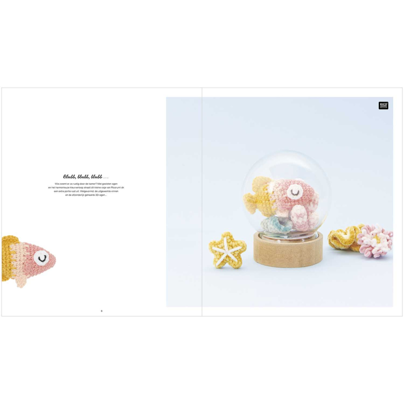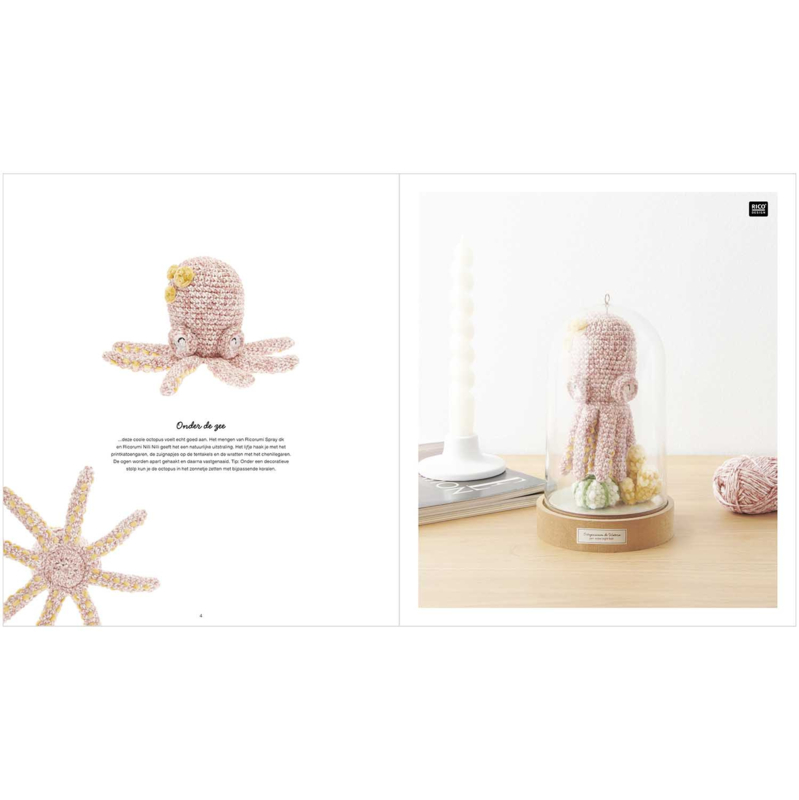 OverzichtGehaakte fans opgelet! Er is een nieuw Ricorumi-universum! In dit nummer combineren we onze klassiekers Ricorumi dk en Ricorumi Spray dk met Ricorumi Nilli Nilli, een mat, glanzend fleecegaren met een chenillestructuur. Het resultaat is een levendige onderwaterwereld met inktvissen, inktvissen, zeesterren, anemonen, poetsvissen, zeeslakken, mosselen en koralen. In combinatie met onze decoratieve kappen worden de modellen sfeervolle woondecoratieobjecten - creëer je eigen kleine natuurhistorische verzameling spannende zeedieren!